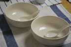 どんぶり2つとレンゲスプーンが2つセットになっている